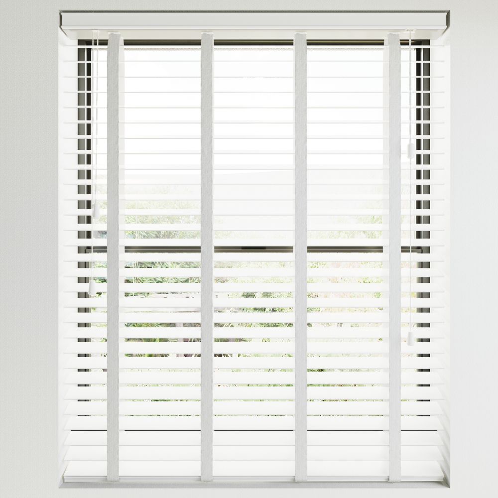 Our wooden and faux wood blinds come with 25mm wide tapes on 50mm wide slats. As the blinds get wider, the tape quantity increases to prevent the slats from bowing when installed.