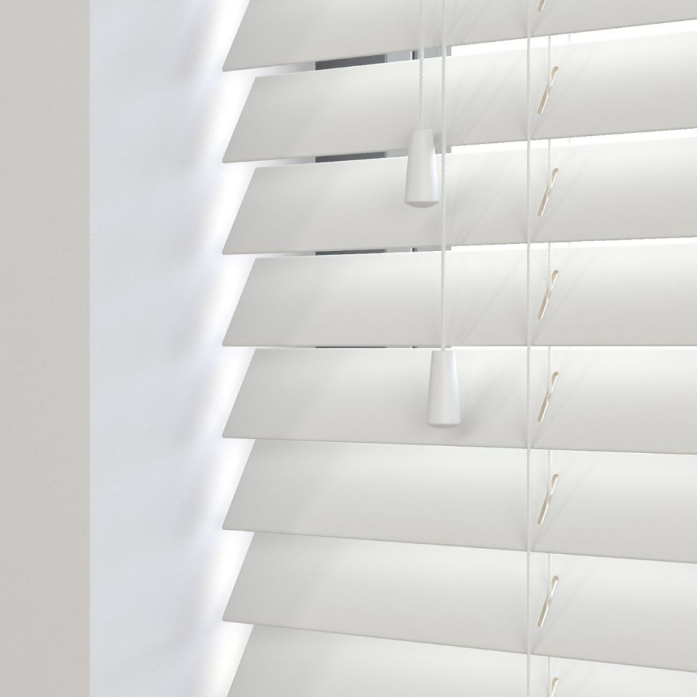 Our most immaculate real wood white, the Bliss White venetian is a clean choice for monochromatic schemes or a gentle backdrop with a more colourful palette. Made from the finest linden wood, the lightweight blind has a diffuse effect on light, which glows through the tilted slats for an angelic effect in sunlight. Choose between light-enhancing 50mm slats or privacy-preserving 35mm slats according to your interior needs.